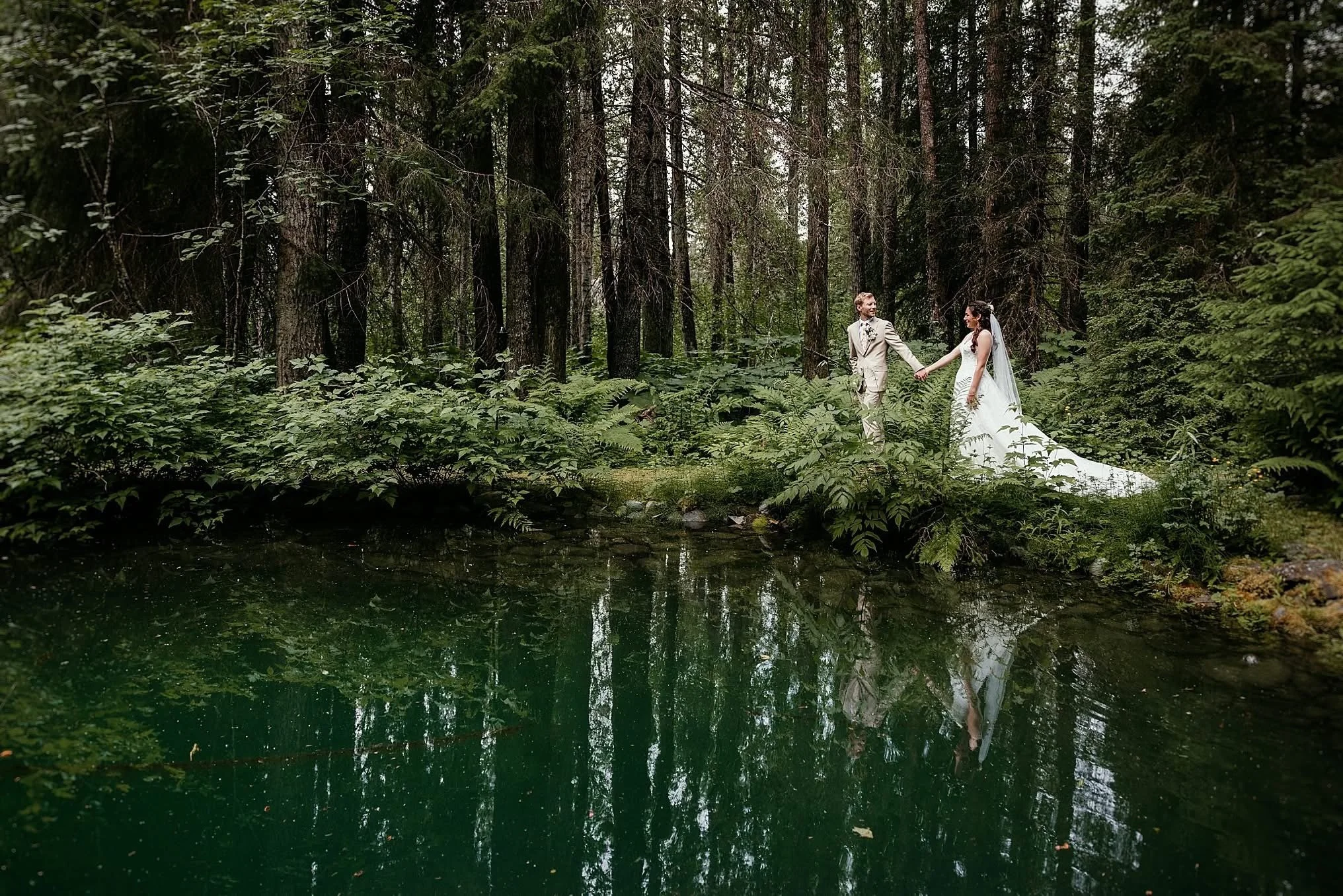 Absolutely! Many of our couples live outside Alaska and travel here for their wedding. Whether you’re dreaming of a mountain view in Girdwood, a coastal ceremony in Homer, or a cozy lodge in Talkeetna, we’ll handle all the local logistics—from vendor coordination to permits—so planning from afar feels easy and connected.